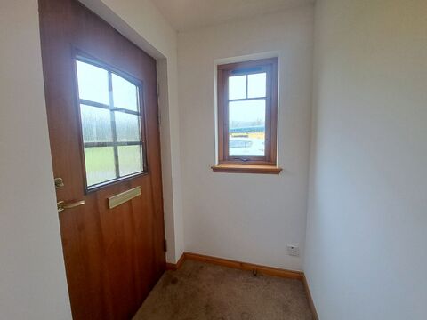 Security entrance door with glazed panel opens into bright entrance vestibule. A window to the front floods the space with natural daylight. Space for hanging coats and storing shoes. Pendant light. Fitted carpet. Glazed door to lounge/dining area.