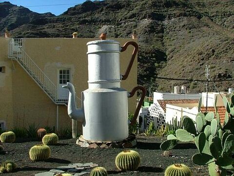Just before you reach the sleepy, little town of Mogan you will come across a windmill standing at the side of the road in the tiny hamlet of El Molino de Viento (meaning windmill). And as you enter Mogan who will see the peculiar sight of life-size sculptures representing household utensils like cups and saucers. These bizarre objects are displayed in the neat gardens and can clearly be seen from the road.