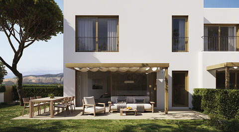 The development consists of 8 townhouses spread over two floors, each with its own plot and private garden. The homes have been carefully designed, incorporating Mediterranean-style details and finishes that reflect a sophisticated and contemporary aesthetic. There is also the possibility of adding a private pool (not included in the price). Pool construction prices: between €20,000 and €25,000 or to make 3 bedrooms instead of 2 bedrooms for 10.000,-- € more.