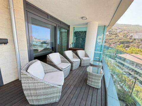 Chestertons is delighted to offer for sale a spectacular property located in Ocean Spa Plaza, Gibraltar. This stunning south facing apartment, positioned on a mid-floor, boasts 2 spacious bedrooms and 2 modern bathrooms. With an interior space of 83 sq m, the property also features a magnificent 28 sq m wraparound terrace, perfect for enjoying panoramic views and outdoor relaxation. Additional features include a designated covered parking space for your convenience. Ocean Spa Plaza is renowned for its luxurious amenities, including the Sky Spa on the top floor, which offers a variety of exclusive water features such as jets, hydro massage, Jacuzzis, a sauna, and a steam room. There is also a family recreation area located on the same level as the garden apartments, providing ample opportunities for relaxation and entertainment. The building itself is an architectural marvel, with its distinctive elliptical shape and a vertical living green wall on the parking levels that enhances the aesthetics while producing oxygen and absorbing carbon dioxide. This property is an ideal choice for those seeking a blend of luxury, comfort, and environmental sustainability in the heart of Gibraltar.