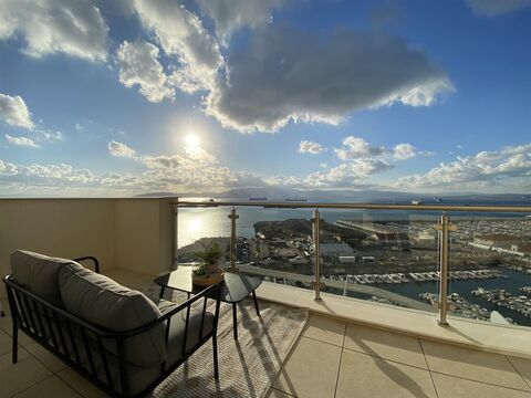 Chestertons is pleased to offer for sale this stunning high floor apartment in Quay 31, Kings Wharf, Gibraltar. This beautifully presented dual aspect property offers spectacular south westerly views across the Strait of Gibraltar and over to Morocco. A spacious 3 bedroom, 2 bathroom home which includes a light and bright open plan living, dining room, including fully fitted kitchen, complete with an island unit plus breakfast bar. In addition, there is direct access onto both terraces. Subject to planning there is potential to add a conservatory to the terrace. The large master bedroom leads directly onto one of the 2 terraces and provides en-suite shower facilities plus extensive built in wardrobe space. The second bedroom is a good size double which also benefits from built in wardrobes. A larger than average private underground parking space is also included with the property and residents have access to the development's fantastic gardens, gym and pool facilities.