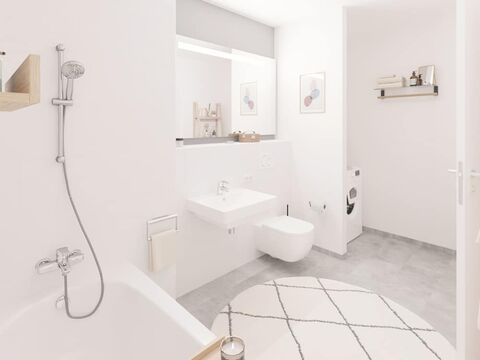 The building boasts a green inner courtyard and outdoor areas that offer plenty of space for neighborly get-togethers. Children can let off steam on lovingly designed playgrounds, while ample bicycle parking spaces in the building and in the courtyard enable sustainable mobility in the city. The apartments impress with real wood parquet flooring, underfloor heating for a cozy indoor climate and selected design elements in the bathrooms. The new building with a total of 91 apartments offers 1-4 room apartments with efficient floor plans, easily accessible by elevator.