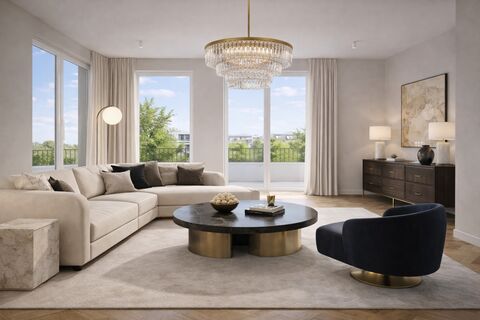 Premium fixtures such as high-quality oak parquet flooring, large doors, floor to ceiling windows and underfloor heating offer a feeling of both relaxing and prestige living. Bathrooms are equipped with both showers and bathtubs and are made of premium materials. The landscaped garden combined with spacious loggias, terraces and balconies offer a unique living experience in the heart of Berlin!