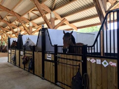 sur site on note la presence de deux batiments photovoltaïques abritant le manege et les boxes; bail emphyteotique en cours avec energeticien.