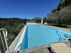 This exceptional estate (buildings totalling 400 sq.m.) is accessible via a gravel road winding through picturesque countryside. The property comprises six charming cottages, each meticulously restored to reflect authentic Tuscan design principles. The grounds feature an elegant swimming pool (12 x 6 m.) offering panoramic countryside vistas, complemented by a well-appointed gazebo and a curated botanical garden.