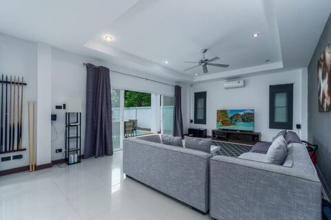 This villa is non-estate/standalone, set on a quiet dead-end road with only around 3 homes beyond it, ensuring no through traffic. The fully fenced plot enhances privacy and peace of mind. Set within a peaceful Thai neighborhood, the villa offers a private living environment while remaining close to everyday conveniences.