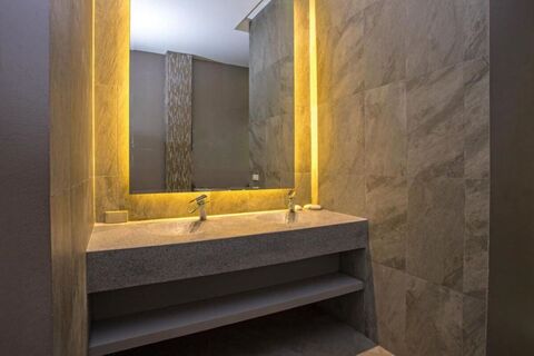 The ground floor welcomes you with a spacious covered terrace for outdoor dining and lounging, surrounded by lush greenery and a tranquil water feature pond. The first swimming pool flows seamlessly into this garden setting — an inviting oasis for relaxing or entertaining guests.