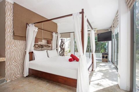 The 500 sqm built-up area is creatively split across 2 levels, blending tropical charm with practical design, with all bedrooms opening directly outdoors or onto private terraces.