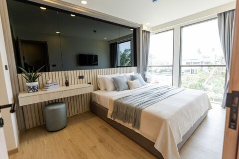 These 1-bedroom condos for sale in the Laguna area near Bang Tao Beach, Phuket offer resort-style living within a prime address just minutes from the island's most desirable coastline. Each unit features a sleek, contemporary layout that blends tropical warmth with minimalist design for a bright, inviting atmosphere.