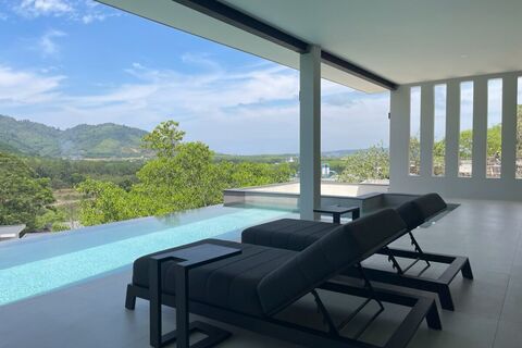 These 4 or 6 bedroom villas for sale in Baan Manik, Phuket offer large pools, generous indoor space, covered patios, and mountain views that make everyday living a retreat. The villas bring together luxury, comfort, and privacy in a serene natural setting.