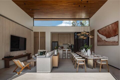 All bedrooms come with en-suite bathrooms. The master suite features a bathtub, double sinks, a walk-in closet, and direct access to the pool terrace. Natural light fills the interiors, and the layout ensures every space feels open and inviting.