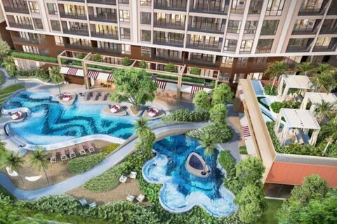 With more than 23,000 sqm of landscaped gardens, the development emphasizes outdoor living. Residents can unwind in cabanas, swim in multiple pools, or enjoy the steam rooms and state-of-the-art fitness centre. A highlight is the Sunset Terrace, complete with loungers to watch the setting sun. The project also provides co-working spaces, balancing leisure with modern lifestyle needs.