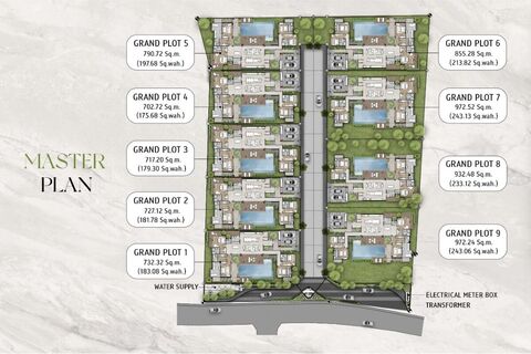 There are 9 distinctive, contemporary, tropical pool villas for sale in this secure and gated compound. All villas feature 4 bedrooms, a huge built-up area of 533-630 sqm and large plot sizes of 702 - 972 sqm.