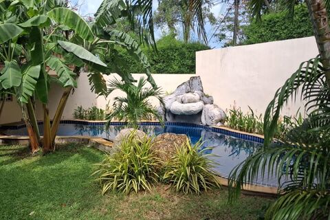Experience tranquility, privacy and security with a well-priced tropical style pool villa amidst a well-tended and lush tropical garden, within a gated estate near Nai Harn Beach.
