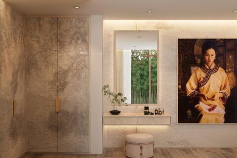 These 4-5 bedroom luxury pool villas for sale are set beside Mission Hills Golf Resort & Spa in Pa Klok, Phuket. The artful balance of tradition and modernity is evident throughout the design. The style is an integration of expansive spaces, elegance, art, and nature, reflecting a sophisticated tropical way of life.