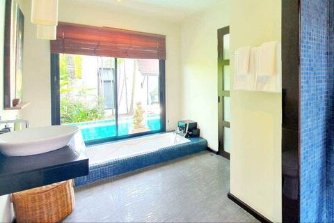 This 3 bedroom modern-oriental style pool for sale in Rawai, Phuket is only a 5 minute walk to the nearest beach. The villa has private parking, a laundry room and a storeroom.