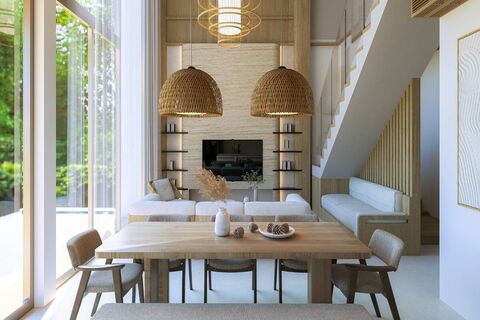 These 4 bedroom family-style pool villas for sale in Srisoonthorn, Thalang, Phuket will feature 2 storeys, maximizing space and functionality, ideal for families who require comfortable and spacious living areas. The common areas are open-plan, ensuring a smooth flow between living, dining, kitchen and the outdoor areas.