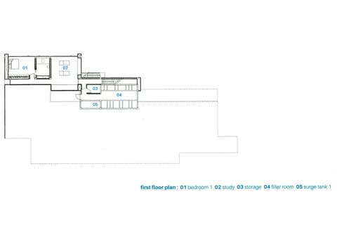The first level has bedroom with an ensuite bathroom and extra space that can be used as a home office or home gym. Beneath the villa are 2 staff quarters, as well as washing and cooking areas.