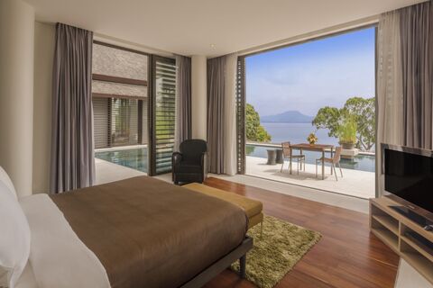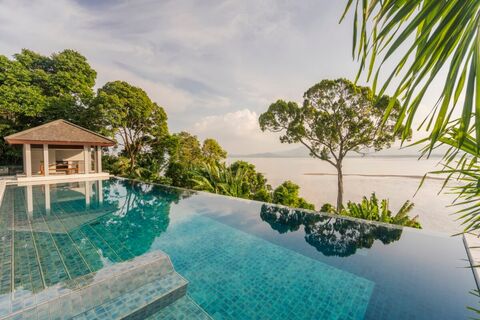 Perched on a hillside with unobstructed views of Phang Nga Bay, offering luxurious indoor and outdoor tropical island living.