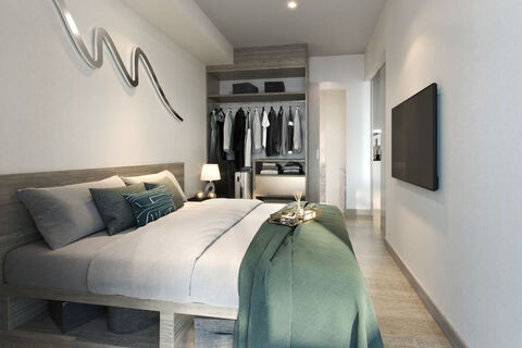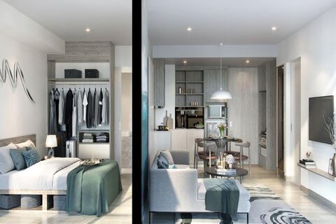 The well-planned rooftop facilities allow residents to make the most of the great outdoors and include an infinity-edged pool with jacuzzi and a unique sky running track. The al fresco social hub also features a large BBQ area, spacious sky deck and yoga space. The development's buildings are linked together with sky bridges, making a large rooftop park surrounded by greenery. You have a panoramic view and a sweeping vista of the tropical surroundings and the lagoon as well as glimpses of the ocean.
