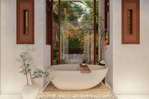 These 3-4 bedroom pool villas for sale in Mai Khao, Phuket offer panoramic sea views. An effortless blend of elegance and comfort, the exquisite craftsmanship is inspired by the principles of Feng Shui, creating a perfect harmony between the mountains and the ocean.