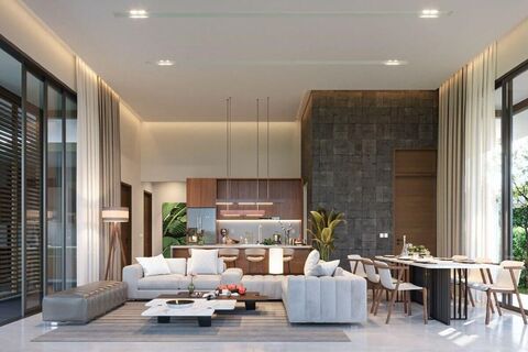 These 3 bedroom modern tropical pool villas for sale are only a 7 minute drive to the unspoiled shores of Nai Yang Beach in Phuket. The design concept is an open layout and the exterior contemporary tropical.
