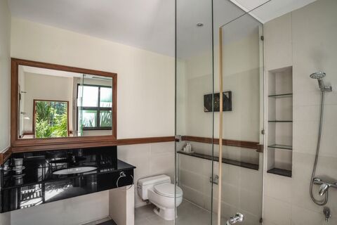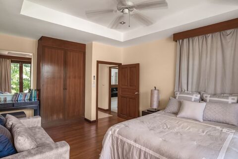 The villa is a 5-minute drive to Bang Tao Beach, where some of Phuket's most popular beach clubs are located, such as Xana Beach Club and Catch Beach Club. A 10-minute drive from the villa is Boat Avenue Shopping Complex which boasts a variety of shops, restaurants and bars, and a European supermarket called Villa Market. The modern Porto De Phuket Shopping Complex, with countless restaurants, Tops supermarket, boutiques and food court, is also 10 minutes away. The Lemonade Kids Club has a children's room, a children's pool and a hot sauna for adults. Patong, the party scene, is a 30-minute drive whereas Phuket International Airport is in 25 minutes.