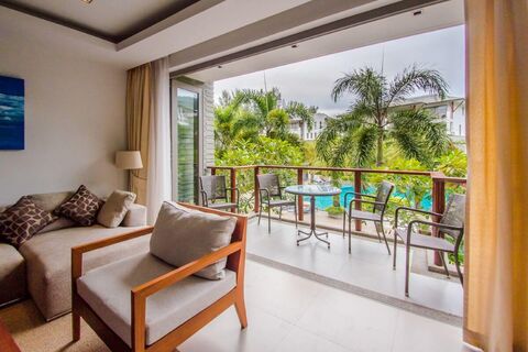 The tropical hillside which surrounds Naithon Bay ensures absolute peace and tranquility. And yet, just a short 10 minute drive away are some of the best golf courses in Asia - Blue Canyon, Laguna's Banyan Tree, Phuket Country Club and the Jack Nicklaus-designed Mission Hills. The Laguna area, Boat Avenue, Villa Market and Porto de Phuket are only a 20 minute drive. Phuket International Airport is only 15 minutes away.
