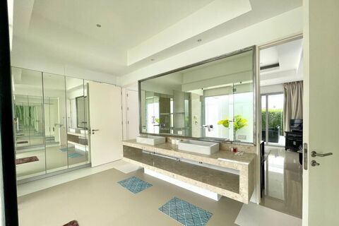 Three bedrooms with ensuite bathrooms and direct access to the outdoor areas are spread over a spacious built-up area of 420 sqm, offering plenty of room and a pleasant living environment, a well-balanced combination of luxury and utility.