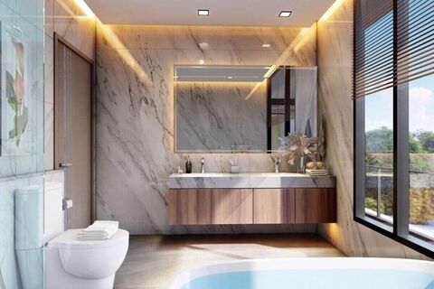 The project is made up of 6 villas with 3 storeys and either 5 or 6 elegant bedrooms and large 56 sqm private swimming pools. Large build-up areas of 675 sqm are well positioned within comfortably sized plots of 600 to 693 sqm.