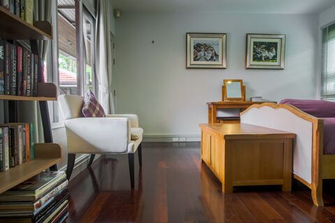 The biggest and most central building has a huge living room, a media room, and a Western-style kitchen with a breakfast bar and a dining area. This building also has 2 bedrooms. Each of the 2 other buildings also have 2 bedrooms.