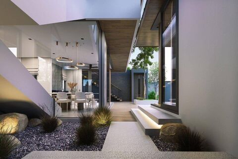 On the second level is purely the owner's domain with a master bedroom overlooking the pool and an ensuite bathroom with a private outdoor shower and garden area, a walk-in closet and a multifunction room. A large half- moon terrace is accessible from indoor or outdoor.
