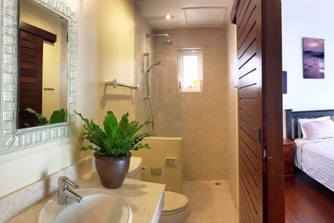 This fully-furnished property with a built-up area of 495 sqm includes a maid's room and laundry (separate from the main villa), which can be independently accessed from the rear of the property. By the poolside is a sala and several sun loungers. The large plot of 1,000 sqm is fully fenced allowing for complete privacy. The pool area and the garden around it plus the wooden pool bridge completes the ambiance of an exotic escape right in your own home.