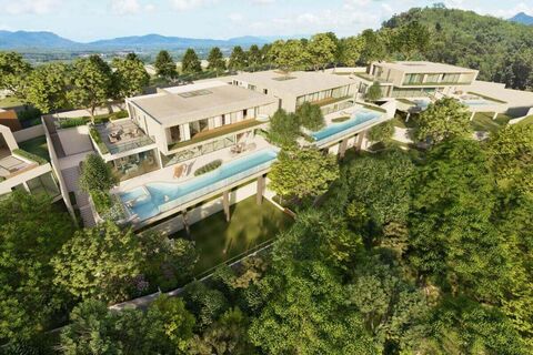 These 4-5 bedroom luxury hilltop pool villas for sale in Manik, Thalang, Phuket are magnificent residential villas set high up on a hillside surrounded by greenery, lush landscapes and sea views across the West Coast of the island.