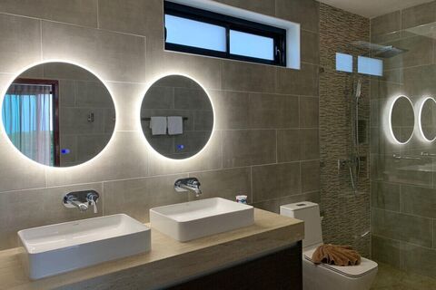 The large and open plan living/dining/kitchen area occupy the whole ground floor and is entirely separate from the sleeping areas allowing for complete privacy. All 4 bedrooms come with en suite bathrooms and private balconies or terraces. The villa is standalone/non-estate and has it's own private water well.