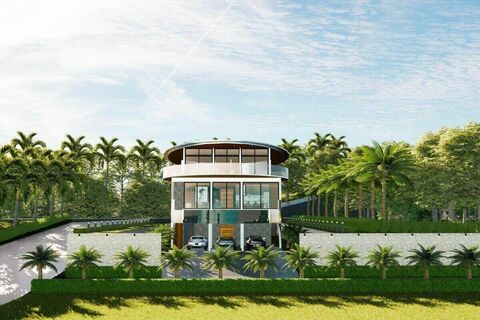 The villa is a modern luxury style with an outstanding and unique layout and structure. The villa is non-traditional and shaped like the figure eight or rather 2 egg-shaped structures linked together.