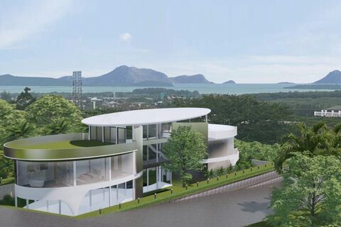 On a hillside in Koh Kaew overlooking the city, lush tropical greenery and distant sea views.