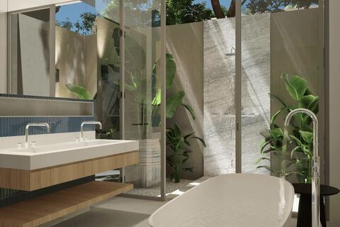 Only 8 villas will be built in this modern contemporary style boutique development. Each villa will have 3 bedrooms with en suite bathrooms. Built up areas range from 342 - 380 sqm on plot sizes of 426 sqm - 577 sqm. The show unit is currently under construction.