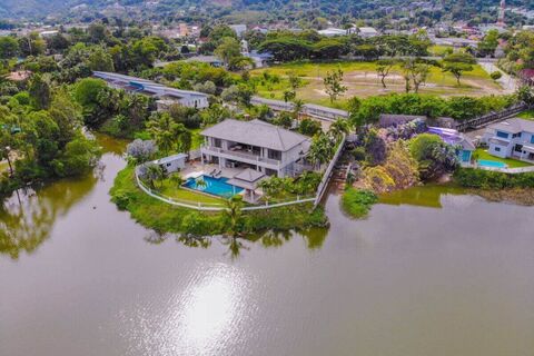 The villa is very spacious villa with an interior of 550 sqm metres and all bedrooms have en suite bathrooms. The large plot has more than enough room for a garage that can house 5-6 cars, a large 115 metre saltwater swimming pool and a tropical garden with a 180 degree view of the lake.