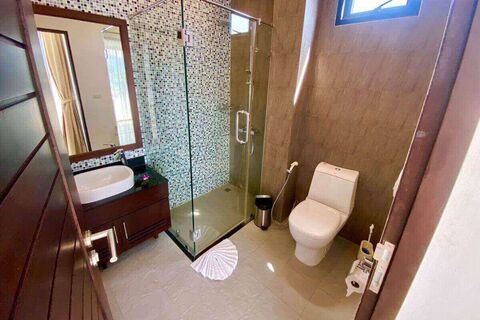 Rawai Beach, a great place to enjoy seafood by the ocean as well as a good starting point to do some island hopping is only around 5 minutes away. It is not suitable for swimming, but it does offer beautiful views of the nearby islands and has a peaceful local atmosphere. For swimming, Nai Harn Beach is only a 12 minute drive. The Rawai/Nai Harn area has an extensive choice of restaurants, coffee shops, convenience stores, grocery stores, pharmacies, gyms, massage & spa shops, beauty salons and retail shops. Basically tropical island living with all of life's modern conveniences in a provincial setting. Phuket International Airport is a 1 hour drive.