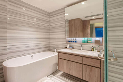 The multi-functional lobby area contains a lounge as well as commercial areas, and there are staff on hand ready to cater to your every need. The design combines the architectural style of the new Southeast Asian with the local features of Phuket Island, and the construction makes full use of the terrain, creating a rich spacious layout and skyline contours.