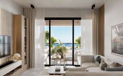This project has sleek architecture, sustainable features, reimagines everyday living, the ultimate urban concept, which provides the ideal blend of quality and functionality, enhanced with a touch of coastal elegance, yet giving you that home from home feel, it has been thoughtfully designed to make the most of the area's natural climate. The open-plan living and dining area, connects seamlessly to a covered balcony, an ideal spot for laid-back living and effortless entertaining. The modern fitted kitchen has been designed with high quality finishes, ample storage and worktop space, perfect for all your kitchen needs. There are two double bedrooms the master boasting a marble finish en suite with shower unit, both bedrooms designed to a high standard with floor to ceiling fitted wardrobes, plus there is a modern family bathroom.