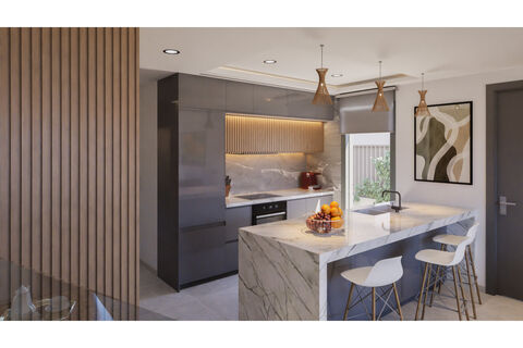 These exclusive houses are designed with elegant and functional interiors, fully equipped kitchen , appliances included. The bathrooms have a vanity unit with washbasin and light . The bedrooms include lined wardrobes with drawer units and each property has pre-installation for ducted air conditioning .