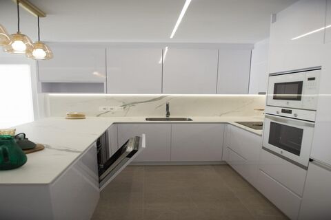 3 Bedroom 2 Bathroom villas with a modern open plan design ground floor consists of living/dining/kitchen with large patio doors leading from the living room to the patio and pool, bedroom again with patio doors to the patio and pool and a bathroom. 1st floor a further 2 bedrooms with access to a large terrace, and a bathroom. Bathrooms come fully fitted, a fully equipped kitchen including (induction hob, extractor fan, oven, microwave, built in fridge, built in dishwasher, washing machine), Bedrooms come with built in wardrobes with LED lighting with the master having a walk in wardrobe , patio, and private pool, and off road parking.