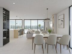 There are several models available, you can choose between a ground floor with plot and private pool or a first floor with solarium and elevator also with a private pool. They have 3 bedrooms, 3 bathrooms (1 of them en suite), an open kitchen with living room and terrace.