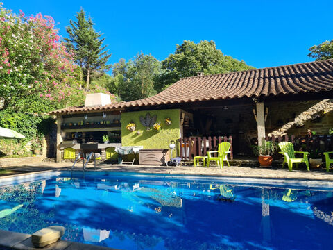 Pool and Pool House: Enjoy a 5 x 10-meter tiled pool with sand pump. The pool house is equipped with a kitchen, WC, shower and covered terrace for relaxing poolside. The wooden sunbathing terrace and lawn complete this idyllic outdoor space.