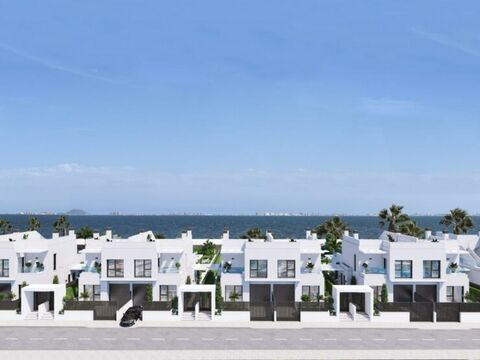Experience unparalleled coastal living in these exclusive, newly built villas nestled in the captivating village of Los Alcazares, Murcia, Spain, directly bordering the tranquil Mar Menor. Imagine stepping out your door and onto a 4km promenade, your personal front-row seat to breathtaking sea vistas. As dusk settles, prepare to be enchanted by a truly unique spectacle - the distant skyline of La Manga, illuminated against the night sky, mirroring the iconic allure of New York City's skyline reflected over the water.