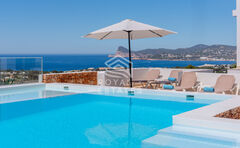 The trees that surround the exclusive Villas transfer the Mediterranean fragances to the interior of the homes, such as thyme, or rosemary. The natural division of the vegetation in each one of them allows the most intimate atmosphere of the home to be enjoyed. Breathe, and relax from the infinity pool where you can dive, while admiring exceptional views of the centuriesold carob trees and the Mediterranean Sea. Immerse yourself into the pleasure of wellbeing, relaxation, and deep tranquillity in the private spa that awaits in your villa. Breathe in the wooden atmosphere, relax in the warm jacuzzi and sauna that will heighten your senses. Admire the outdoor nature from the comfort of the sunbeds, while the blue light from the pool dives in. Our commitment to nature is everywhere using sustainable and natural materials such as wood, white river stones, or minerals. A design that allows full advantage to be taken of the panoramic views of the sea and its orange sunsets.
