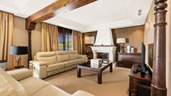 The design of the project takes nature and landscape as a reference, integrating it into the homes. Welcome to the villas, a natural scenery, which gives life to the architectural project from the first moment. A natural path through the trunks of the trees to reach the treetops entering your home. The villas consist of four large bedrooms, on three floors, which can be accessed with the private elevator. Entering the living room you will find harmony and warmth from the wood that runs throughout the floor, up to the high ceilings. Admire the works of art, the sculptural fire-place of marble that divides the room, and the high windows letting in natural light and serving as a viewpoint towards nature. The villas have private cinema room to enjoy leisure time with friends and family.