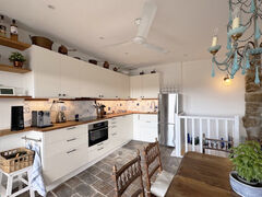 Spacious Living: 5 bedrooms, a bright living room with a cozy wood burner, and a modern kitchen.